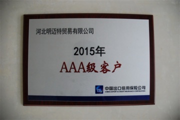 Hebei Minmetals Co., Ltd. was awarded the AAA Class Customer by Sinosure
